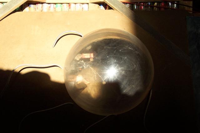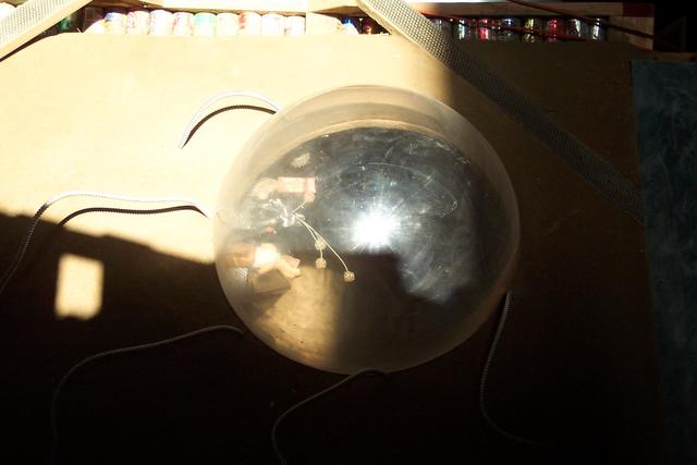 Tony's room has a plexiglass sphere comprising part of the wall.